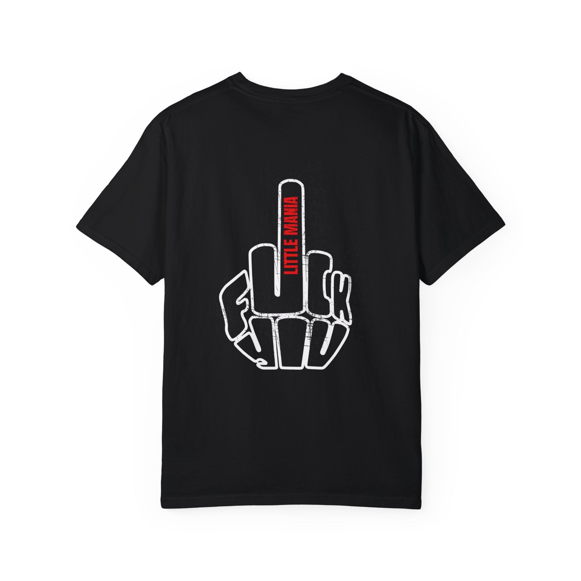 Little Mania Edgy Tee Black with White and Red Logo Design 2